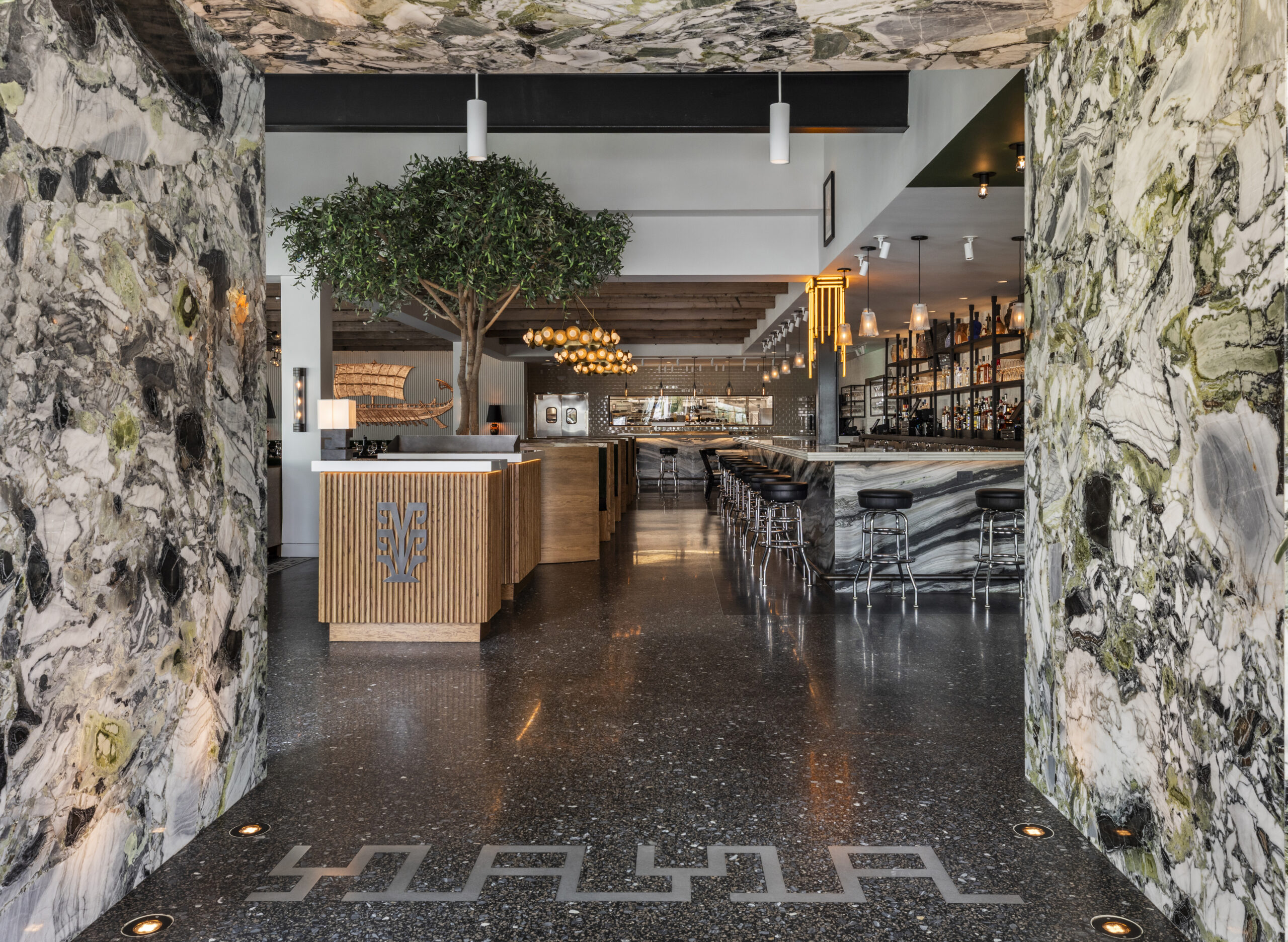 That personality is delivered on entry where a massive olive tree, the national tree of Greece, welcomes diners.